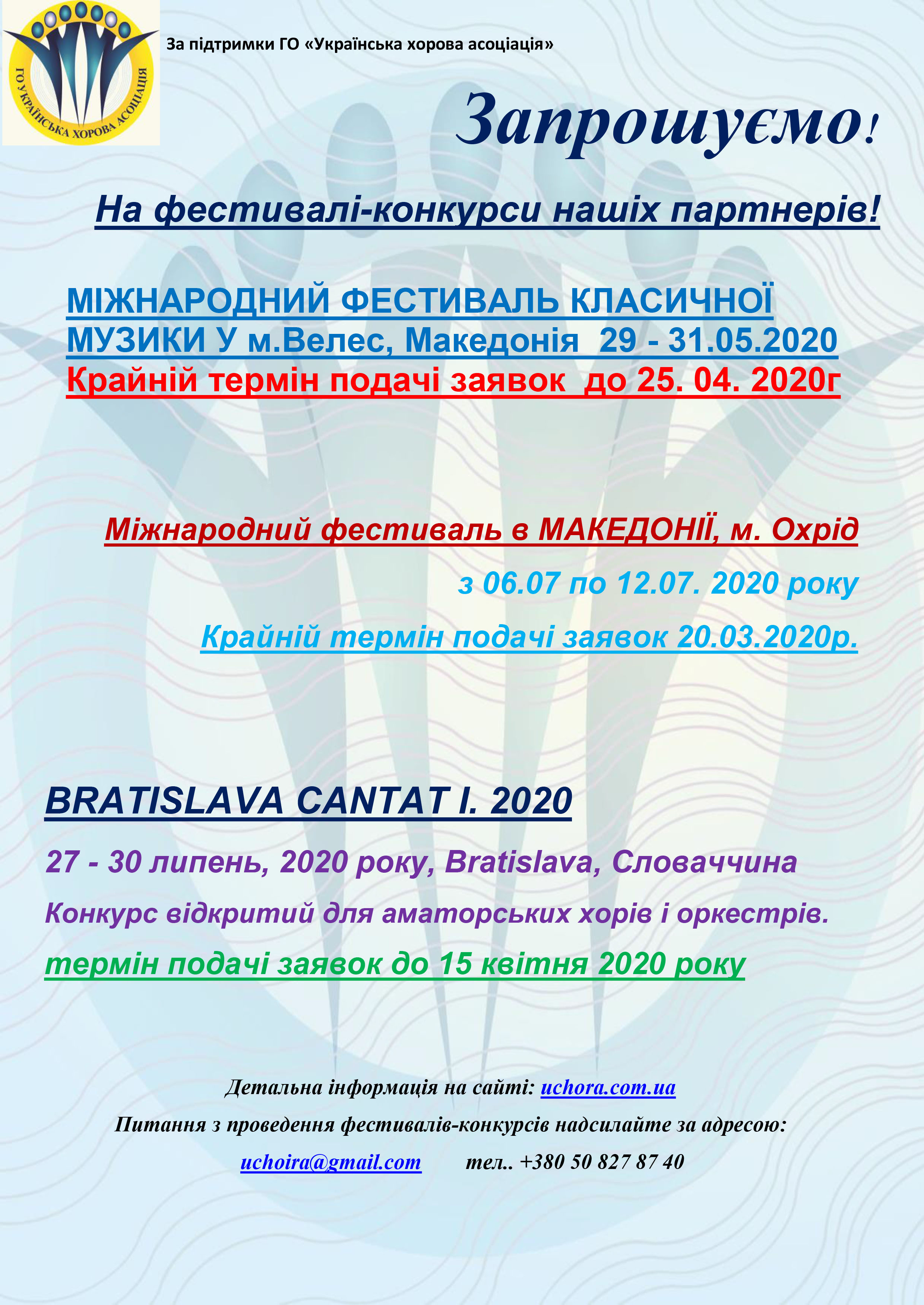 Запрошуємо на фестивалі-конкурси нашіх партнерів!