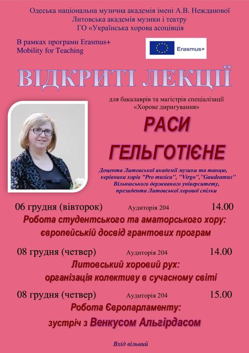 З 05 по 09 грудня відбувся хоровий семінар з доцентом Литовської академії музики та танцю, керівника хорів "Pro musica", "Virgo", "Gaudeamus", президента Литовської хорової спілки!