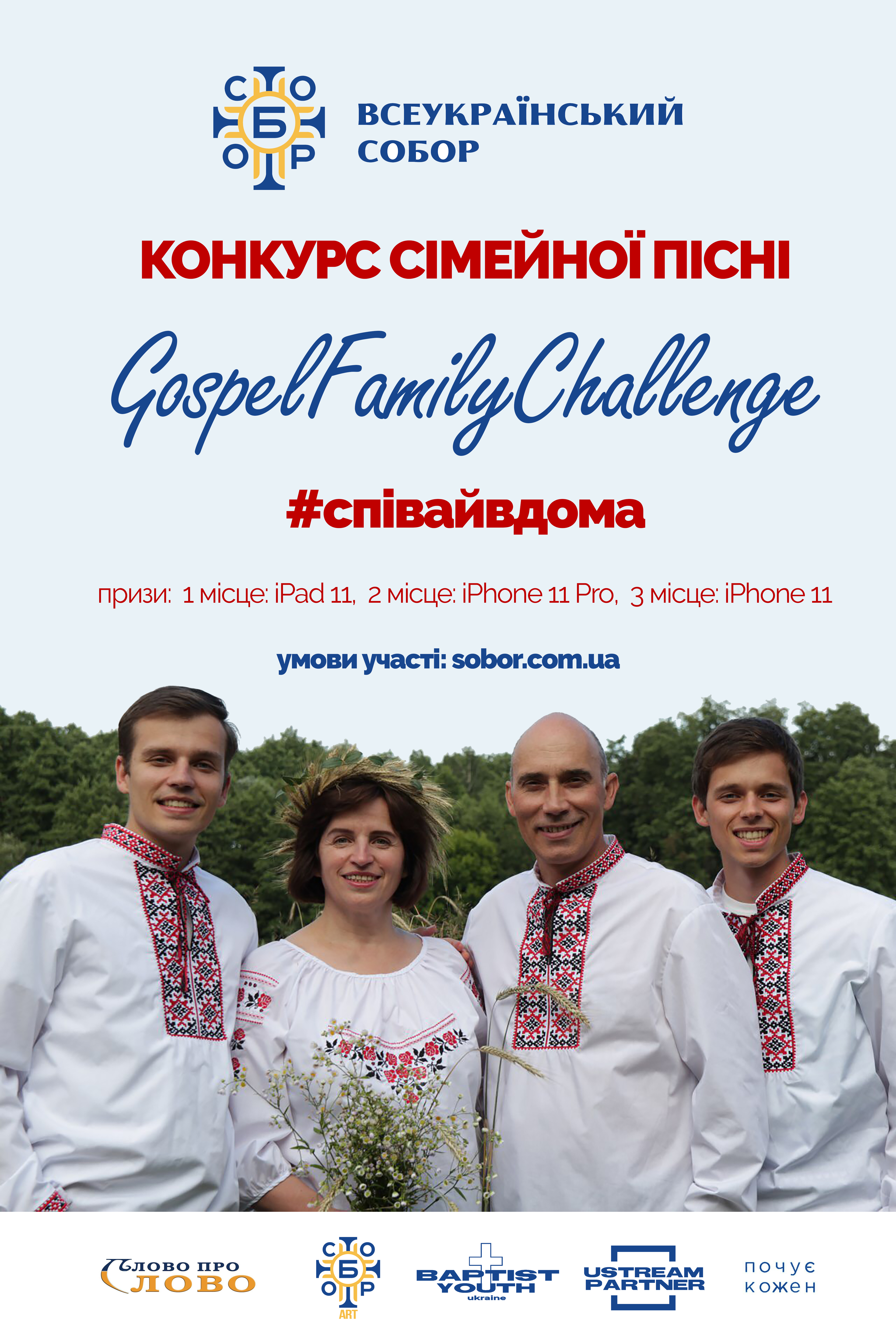 З метою популяризації сімейних цінностей та християнської музики відділ культури Всеукраїнського Собору організовує Конкурс сімейної християнської пісні GospelFamilyChallenge.