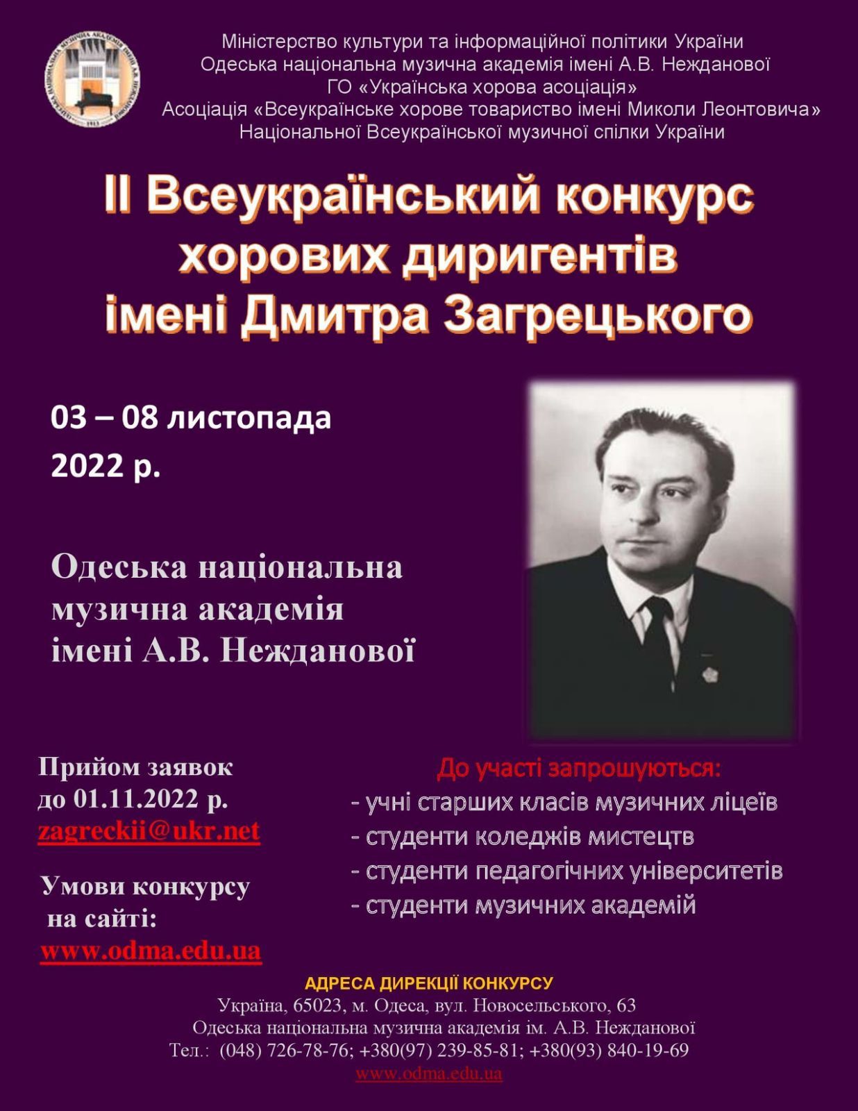 Оголошуємо про проведення ІІ Всеукраїнського конкурсу хорових диригентів імені Дмитра Загрецького і щиро запрошуємо до участі!