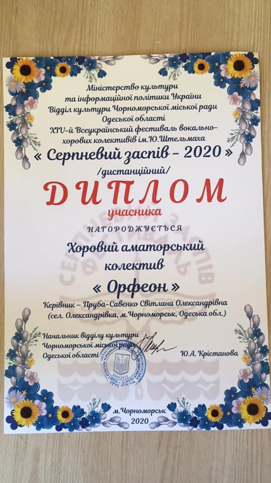 У 2020 році хор увійшов до складу творчого колективу Будинку культури СМТ Олександрівка Одеської обл. та змінив напрямок діяльності. Зараз колектив має назву Хоровий аматорський колектив «Орфеон».